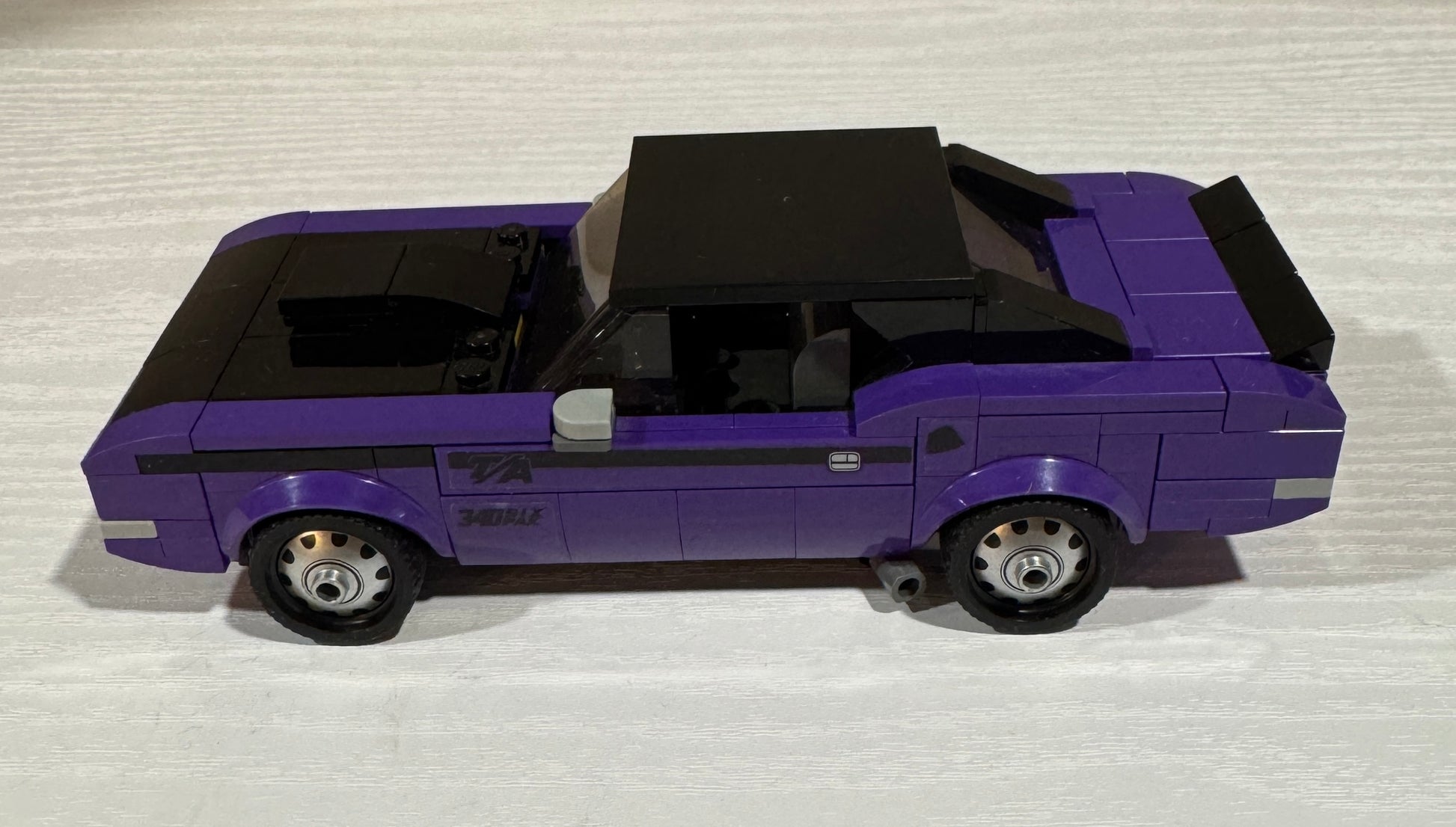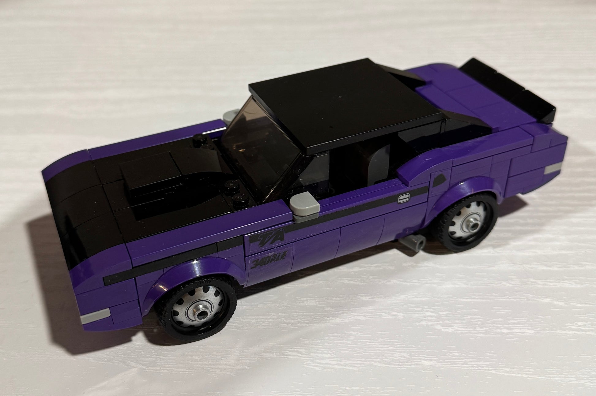 The 1970 Dodge Challenger from LEGO set 76904. As pictured, no driver. There is no instructions so it will ship assembled