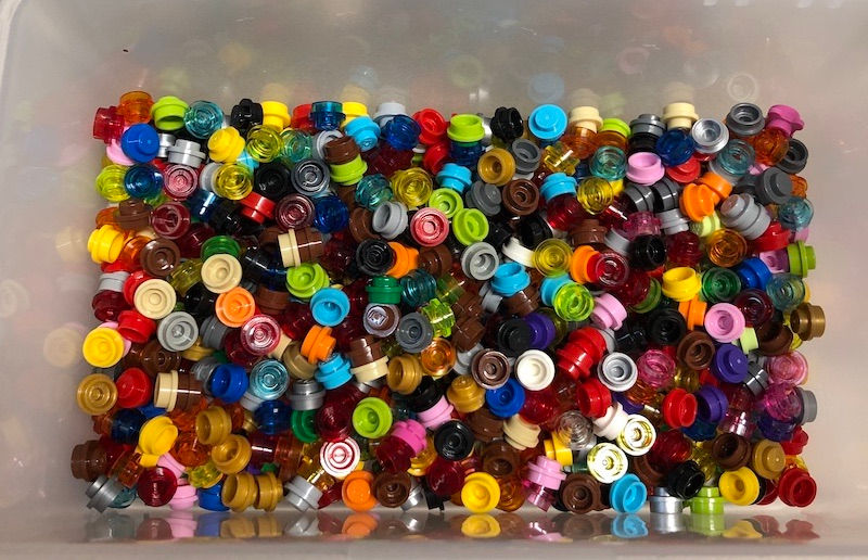Anything that is in the Brick category, I will sort them all together. I will sort them later by size. I don't sort by color. When I list, for example a 1x2 Brick, I will lay them all out and start with a color. When I am done sorting out the larger categories I will pack them up and store them until I want to list them.